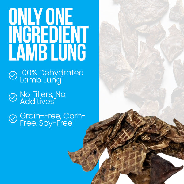100% Lamb - Our slow baked treats are only made with 100% lamb lung. That's it. No artificial preservatives or chemicals. No added sugar or salt. Corn, soy, and grain free.